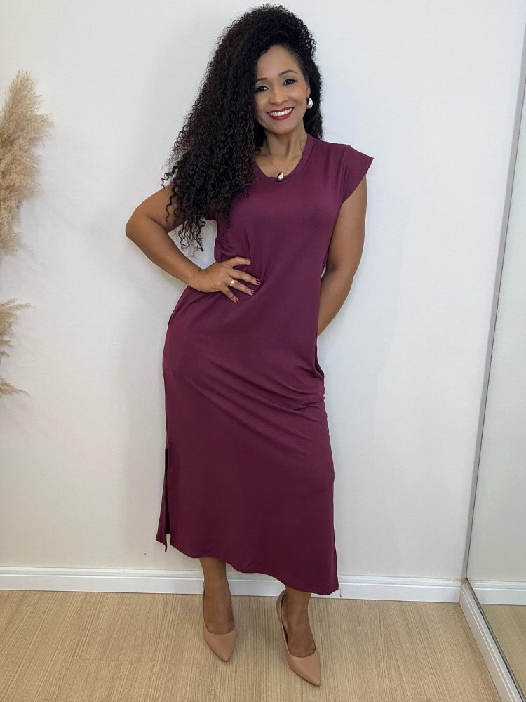 Este vestido longo de moletinho é a combinação perfeita entre conforto e estilo casual. Com fendas laterais que trazem um toque de modernidade e leveza ao look, ele é ideal para quem busca praticidade sem abrir mão de um visual elegante.